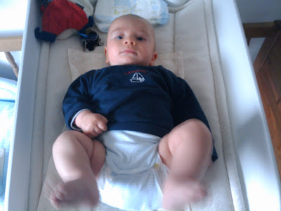 Theo übt fleißig Klappmesser - wäre da nicht noch ein bisschen Babyspeck, er hätte ein 1a sixpack!