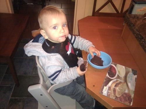 Falls jemand den Schokomuffin vermißt: Theo hat die Tüte damit gefunden und den Inhalt für lecker befunden